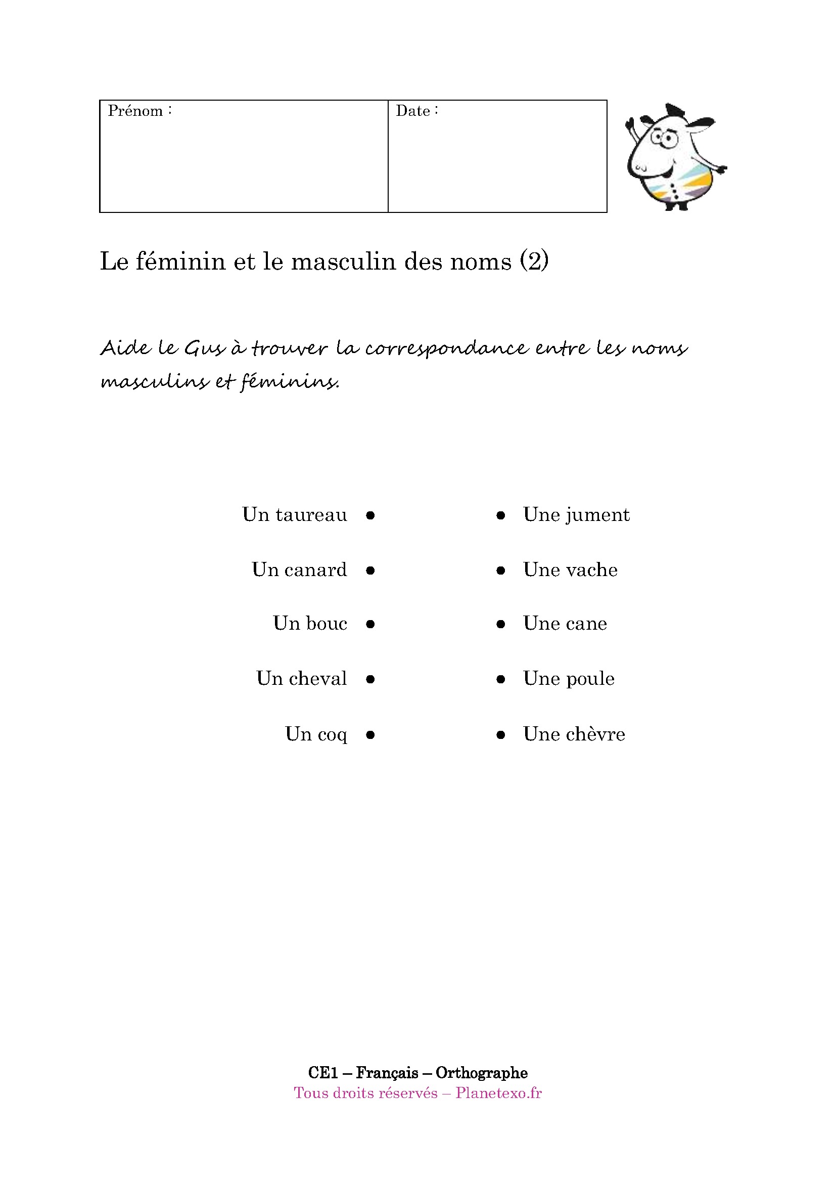 Aide le Gus à trouver la correspondance entre les noms masculins et féminins.
