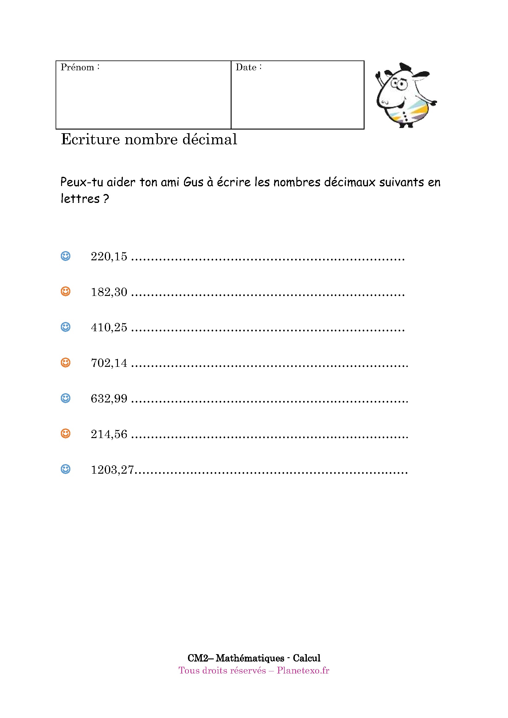 Peux-tu aider ton ami Gus à écrire les nombres décimaux suivants en lettres ?