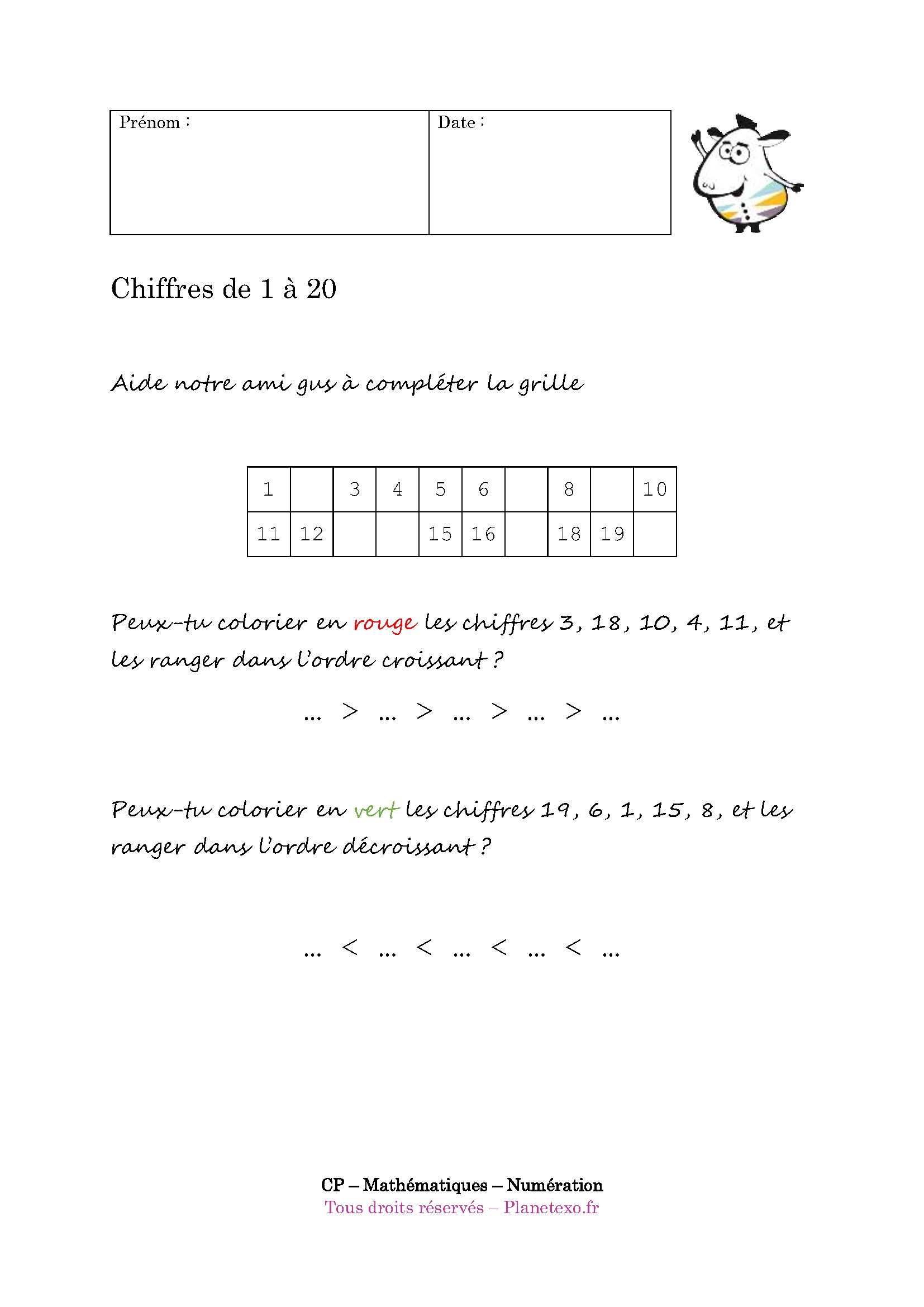 Voir l'exercice de numération 50, grille, ordre, croissant, décroissant